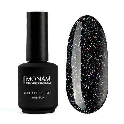 Верхнее покрытие Monami Super Shine top GALAXY – это отличное решение для яркого безупречного маникюра. Прозрачный топ имеет в своем составе мелкие блестки, которые придают даже нейтральным расцветкам праздничные и даже игривые нотки. Имеет средне жидкую консистенцию, что удобно для работы и обеспечивает экономный расход. Средство защищает гель-лаковое покрытие от сколов и царапин в течение 2-4 недель. Мягкая упругая кисточка делает работу со средством простой и комфортной
