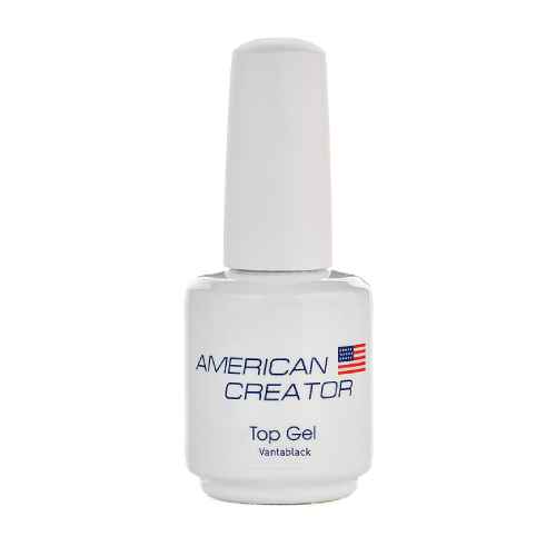 Топ American Creator Top Gel Vantablack - топ без липкого слоя, для чёрных оттенков. Финишное покрытие с УФ ингибитором (вещество, катализирующее восприятие ультрафиолетового излучения от диода и делает полимеризацию покрытия постепенной). Все мастера рано или поздно сталкиваются с проблемой "синевы" на так сильно любимом глубоком чёрном, с ненужным подсвечиванием и без того красивых тёмных тонов, что приводит к их искажению. Именно для этого и был создан данный продукт. Топ прекрасно блестит, даёт зеркальный эффект, совершенно не синит, не трескается, не скалывается и вообще ведёт себя крайне примерно :) На светлых оттенках топ ведёт себя весьма хорошо, что позволяет использовать его не только как топ для чёрного.